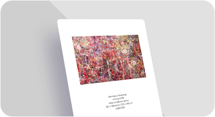 Emmanuel Nkuranga Untitled , 2 019 Mixed m edia on canvas 78.7 x 158 inches / 200 x 4 00 cm US$20,000